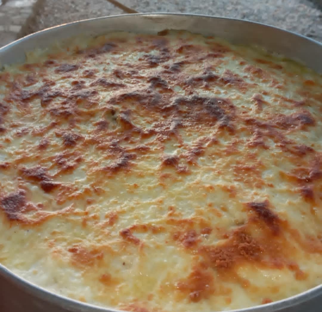 Untamos con mantequilla un molde y colocamos en capas primero las tajadas de plátano, luego queso blanco rallado, luego guiso, el melado de papelón y luego huevo batido. Hacemos este procedimiento varias veces hasta llegar al borde del molde y finalizamos con huevo batido y queso blanco. Tapamos con papel de aluminio y horneamos a 300 grados durante 30 minutos.