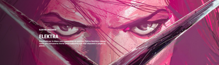 Elektra forma parte de los personajes creados en Marvel por Frank Miller. Tuvo presencia por primera vez en el cómic Daredevil # 168 en el año de 1981. Conocida por sus dotes de asesina y mercenario.