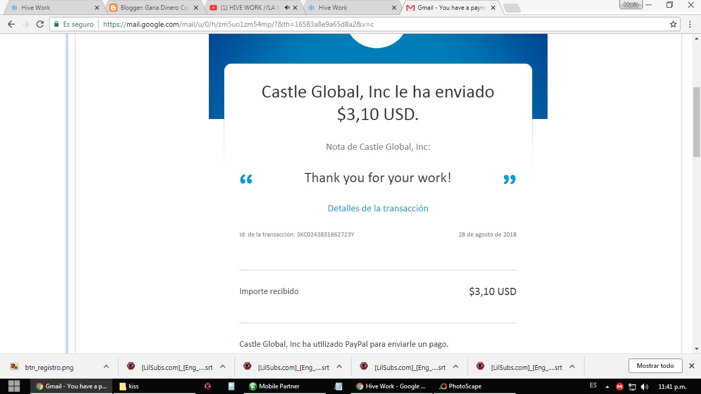 Hive work comprobante de pagomariabarrios (32)in #spanish • 8 years ago Hola mis amores les comparto el mi primer pago en hivework #paypal #vzla #dolares #hivework
