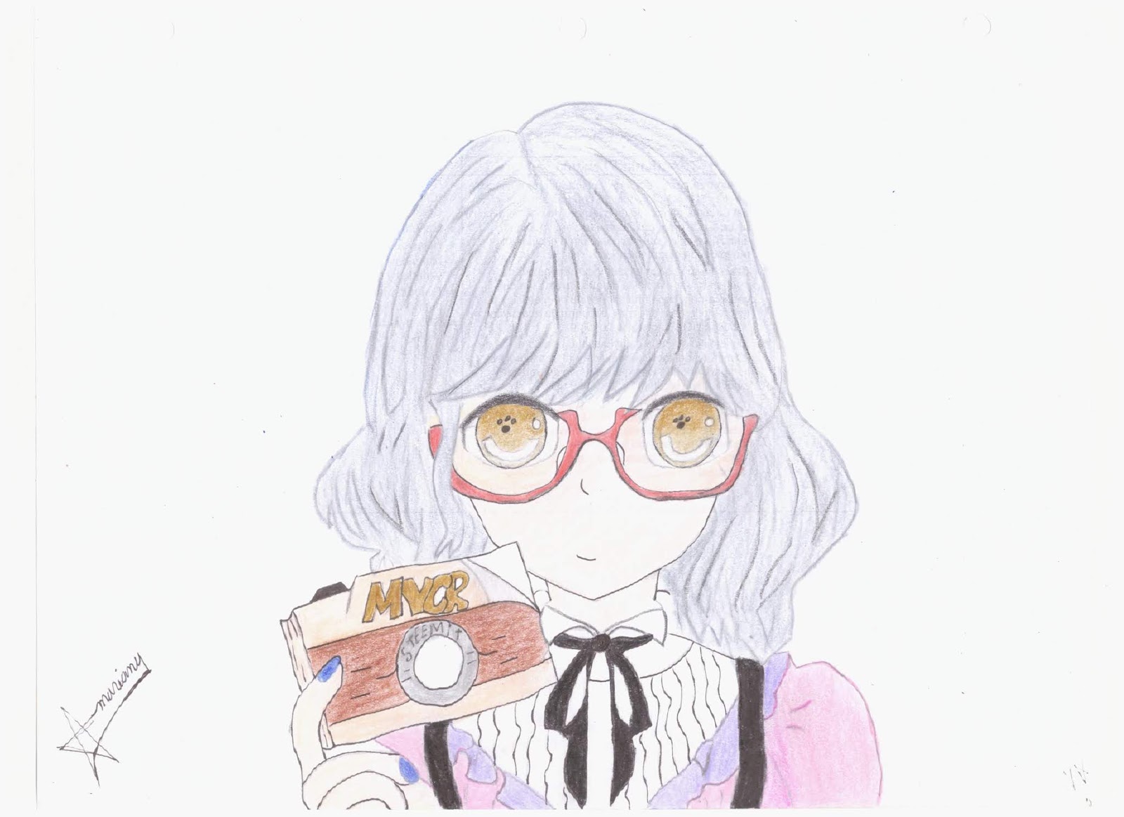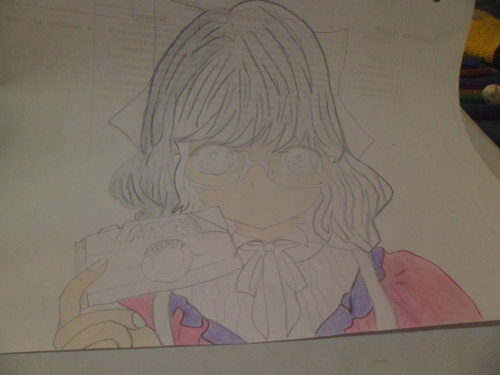 Ya casi terminando el dibujo se me antojo quitarle el lazo que tenia detrás como pueden notar.