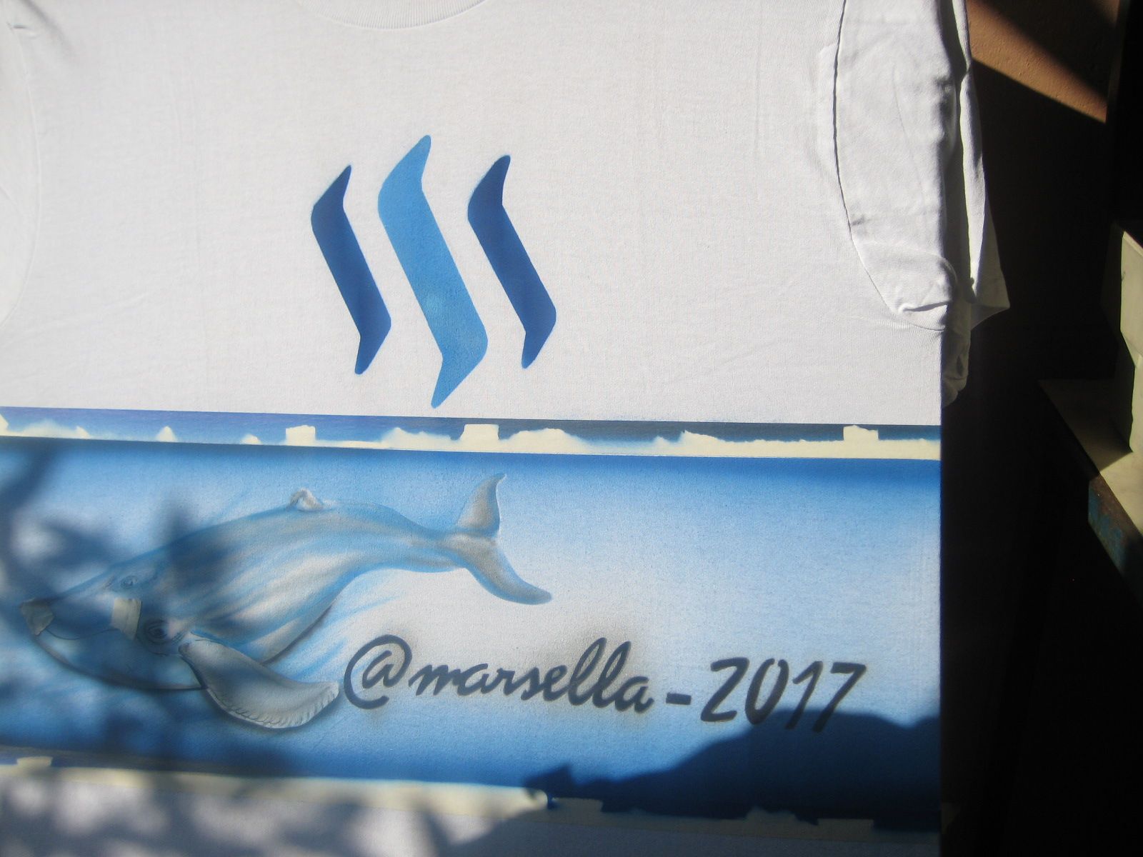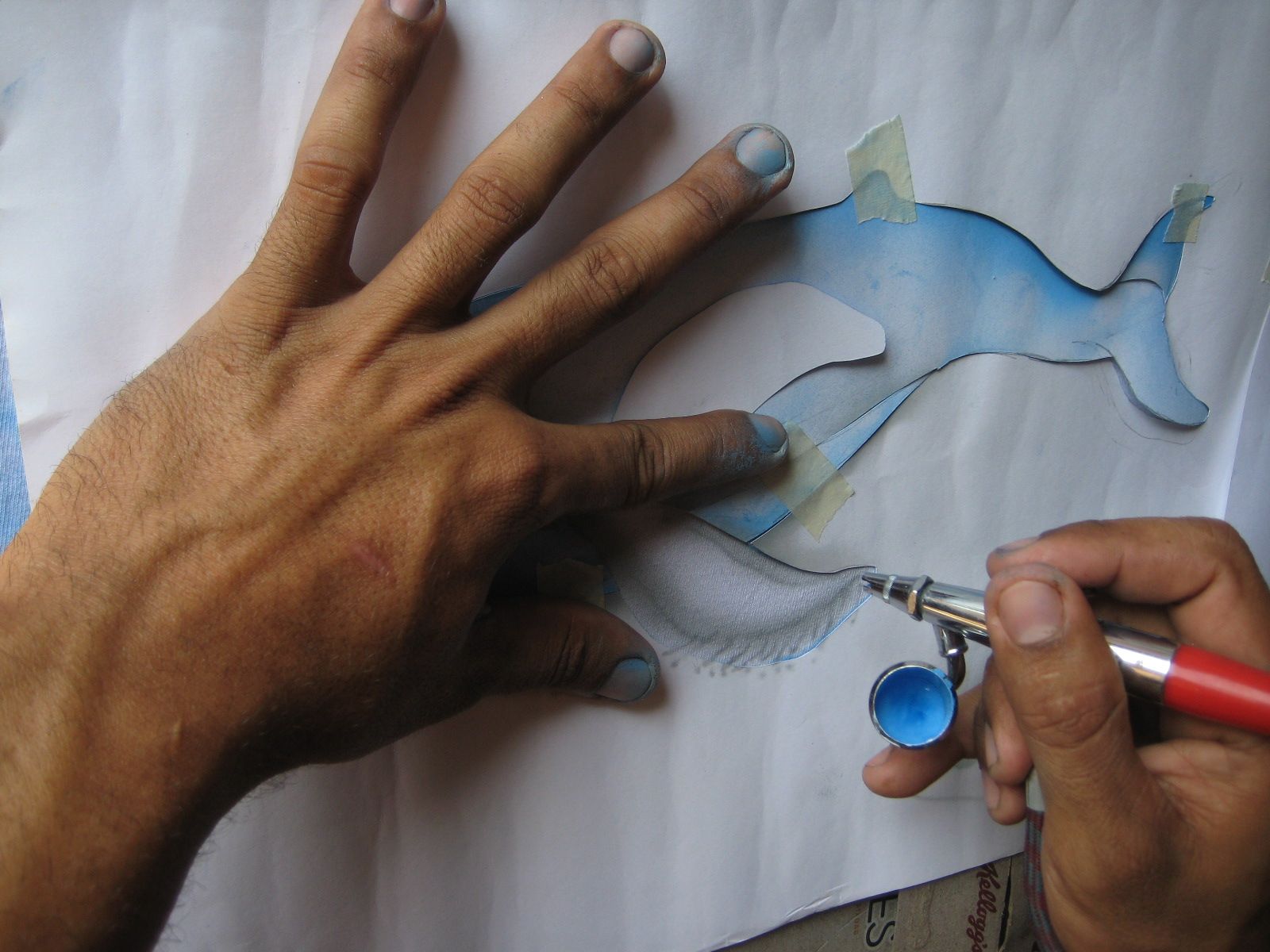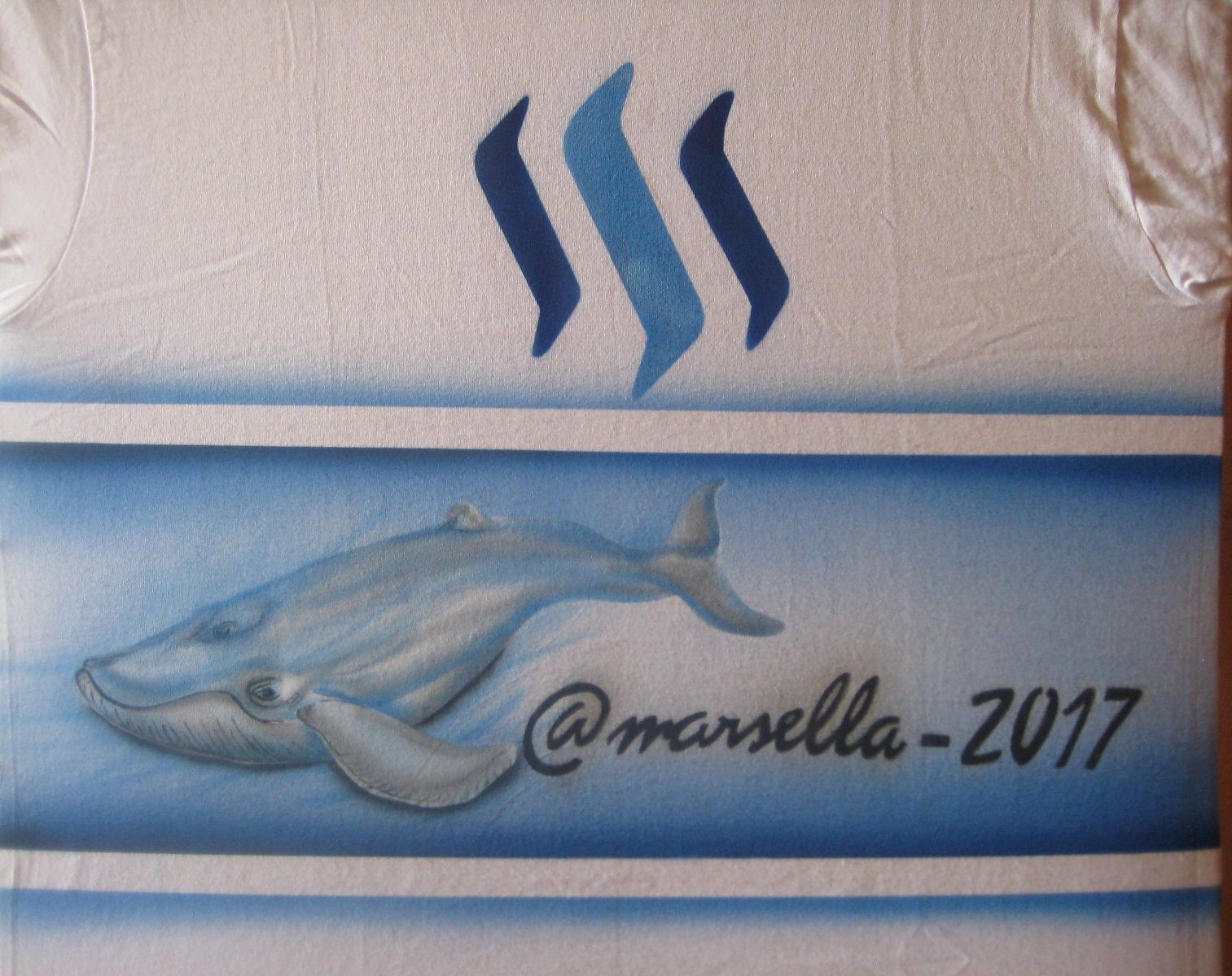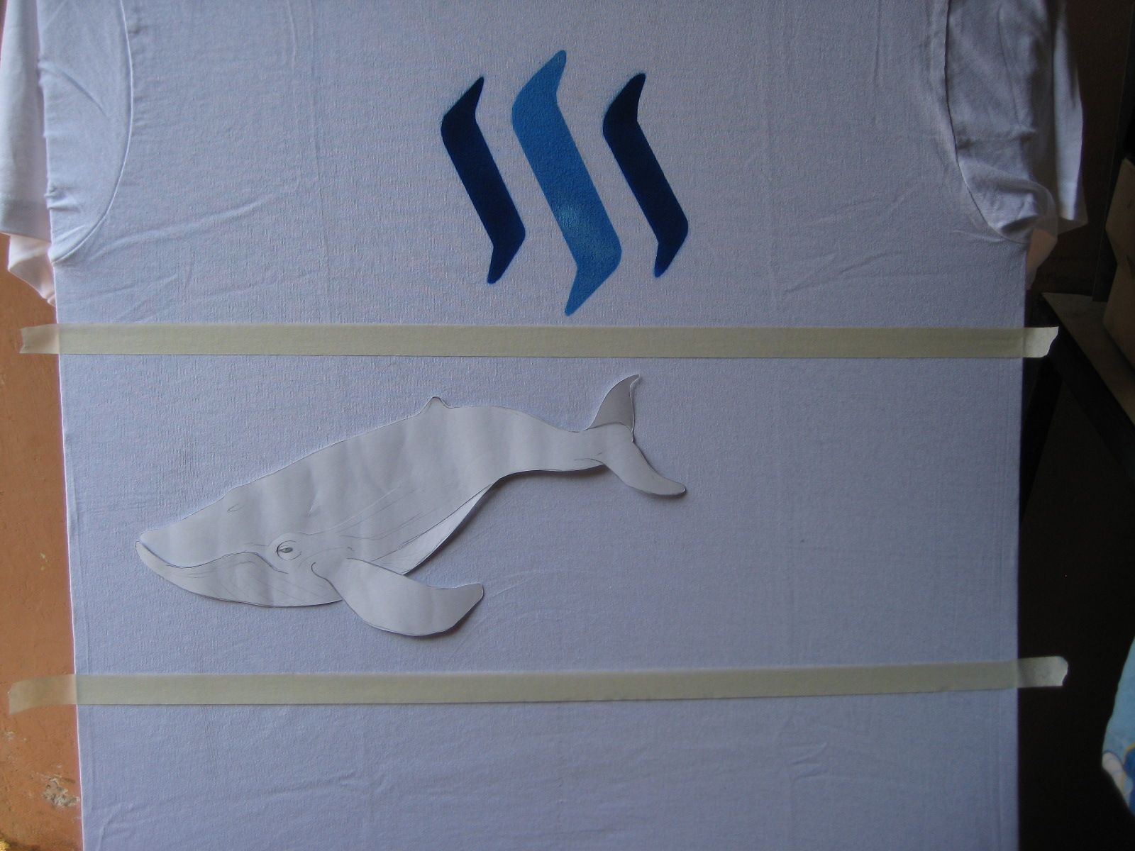 Luego de haber pintado, enmascaramos la segunda fase, nuestra ballena Steemit.