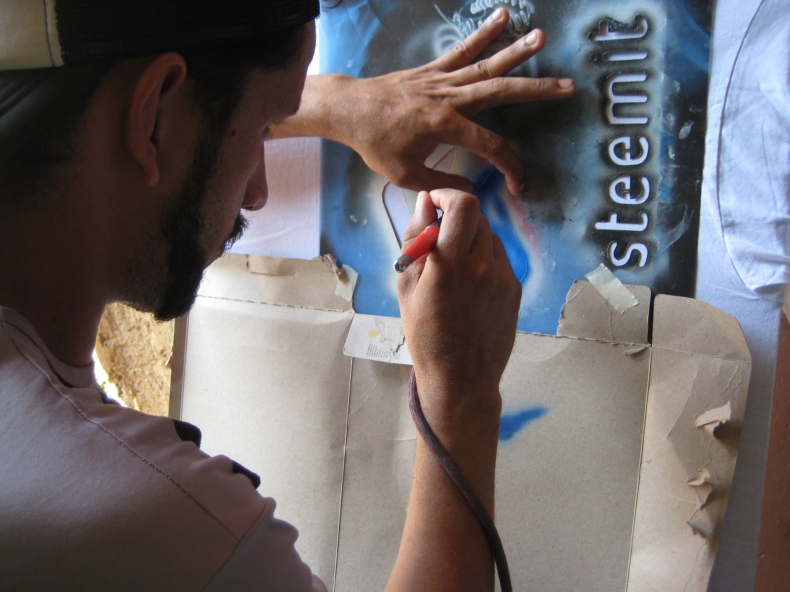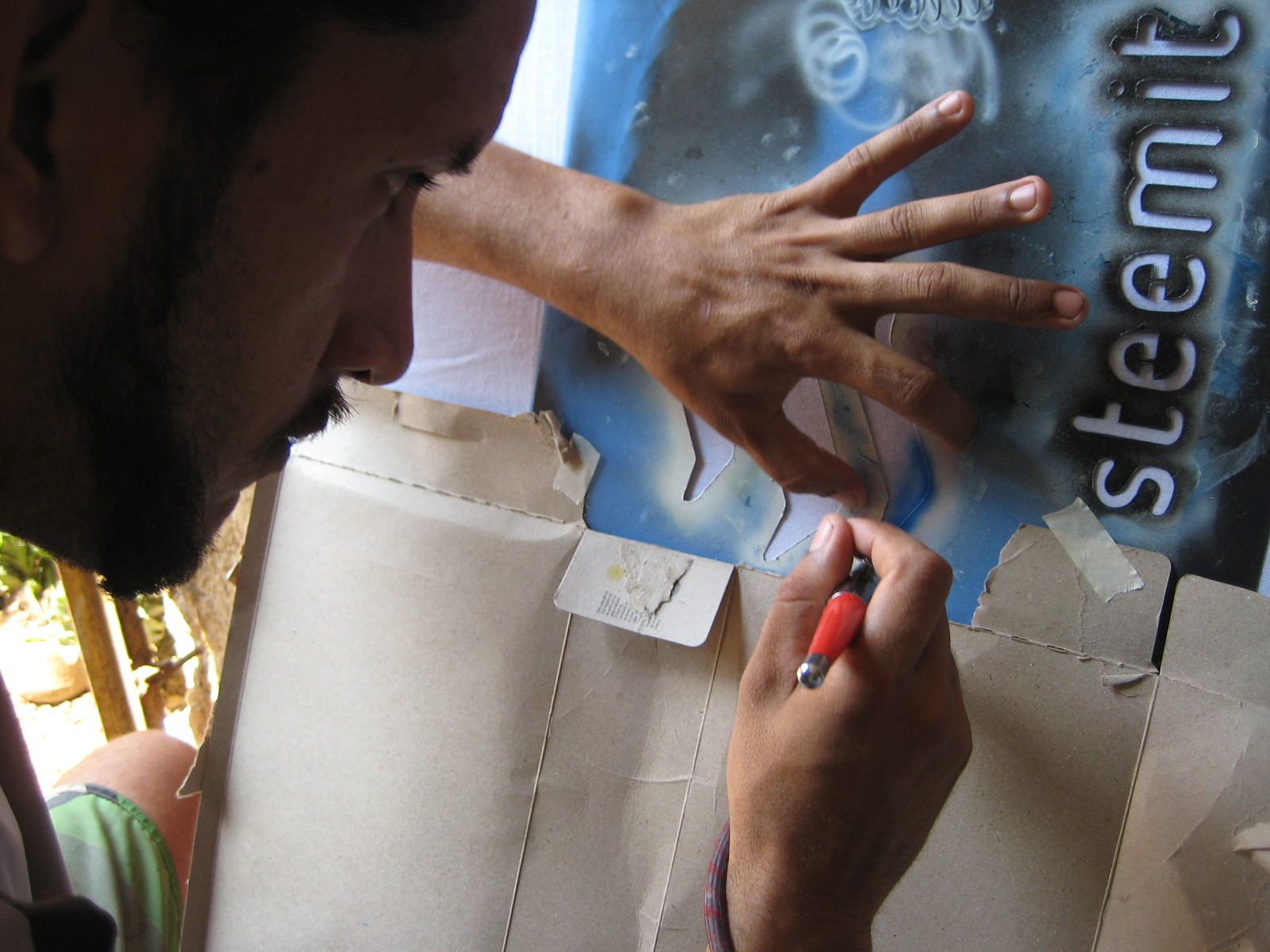 Primero se cuadran las plantillas, y se comienza por el logo Steemit.