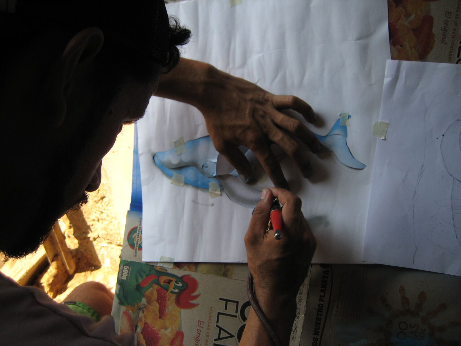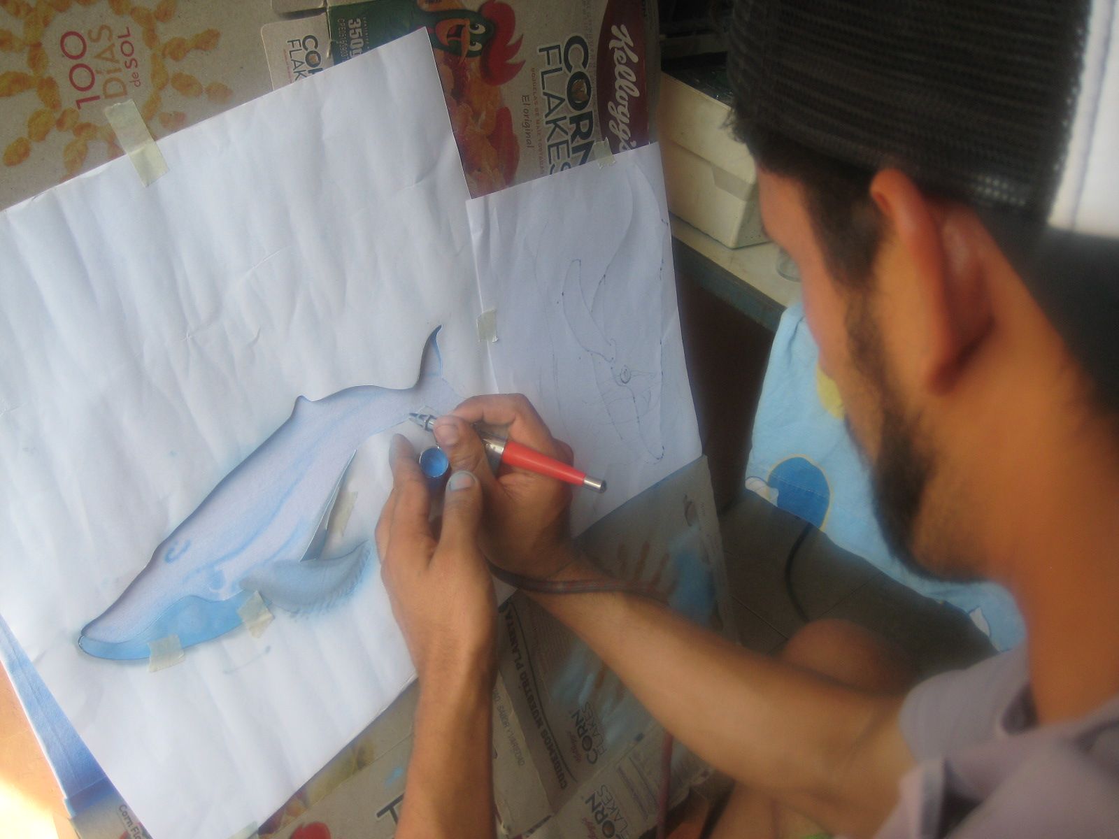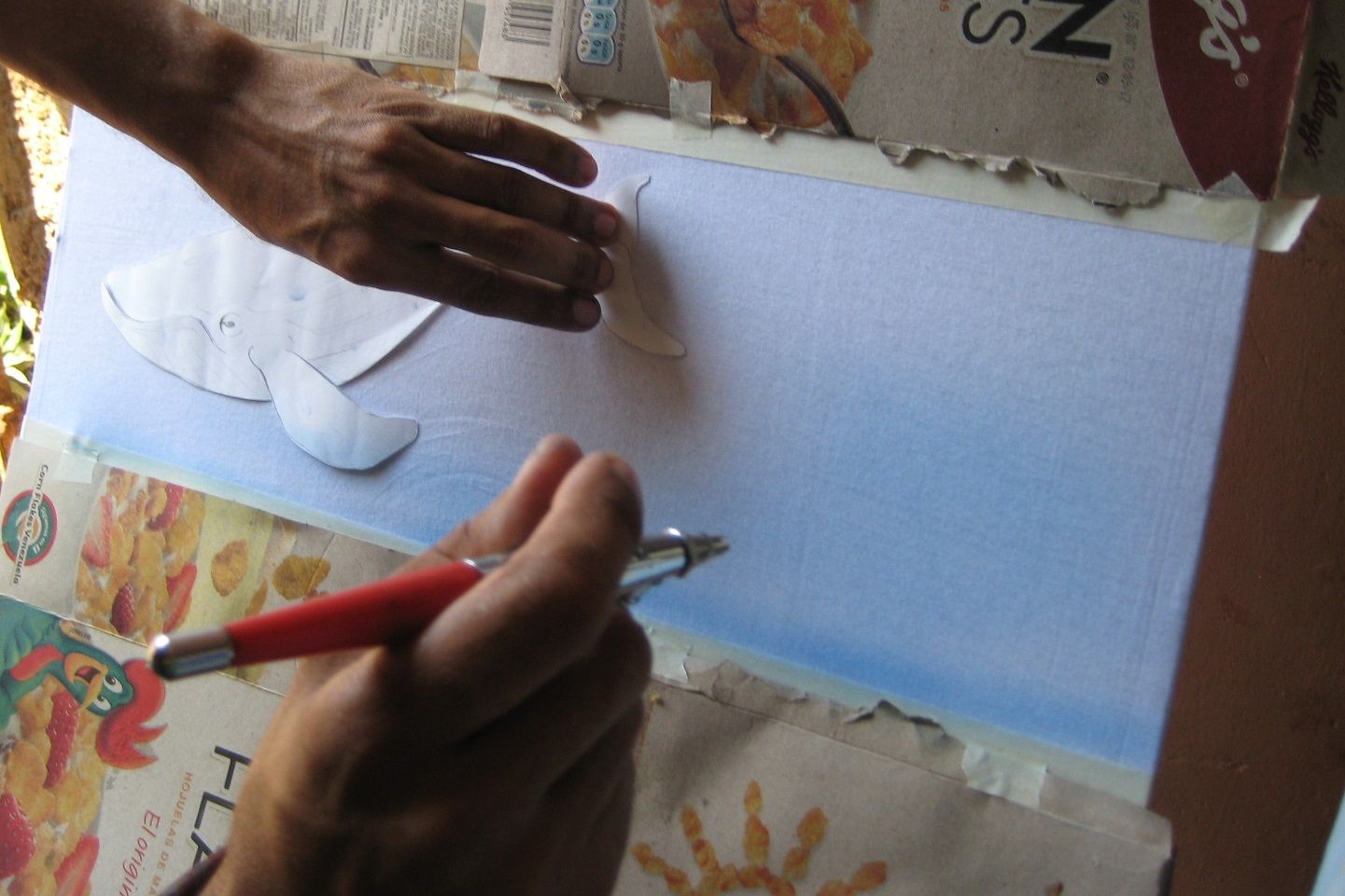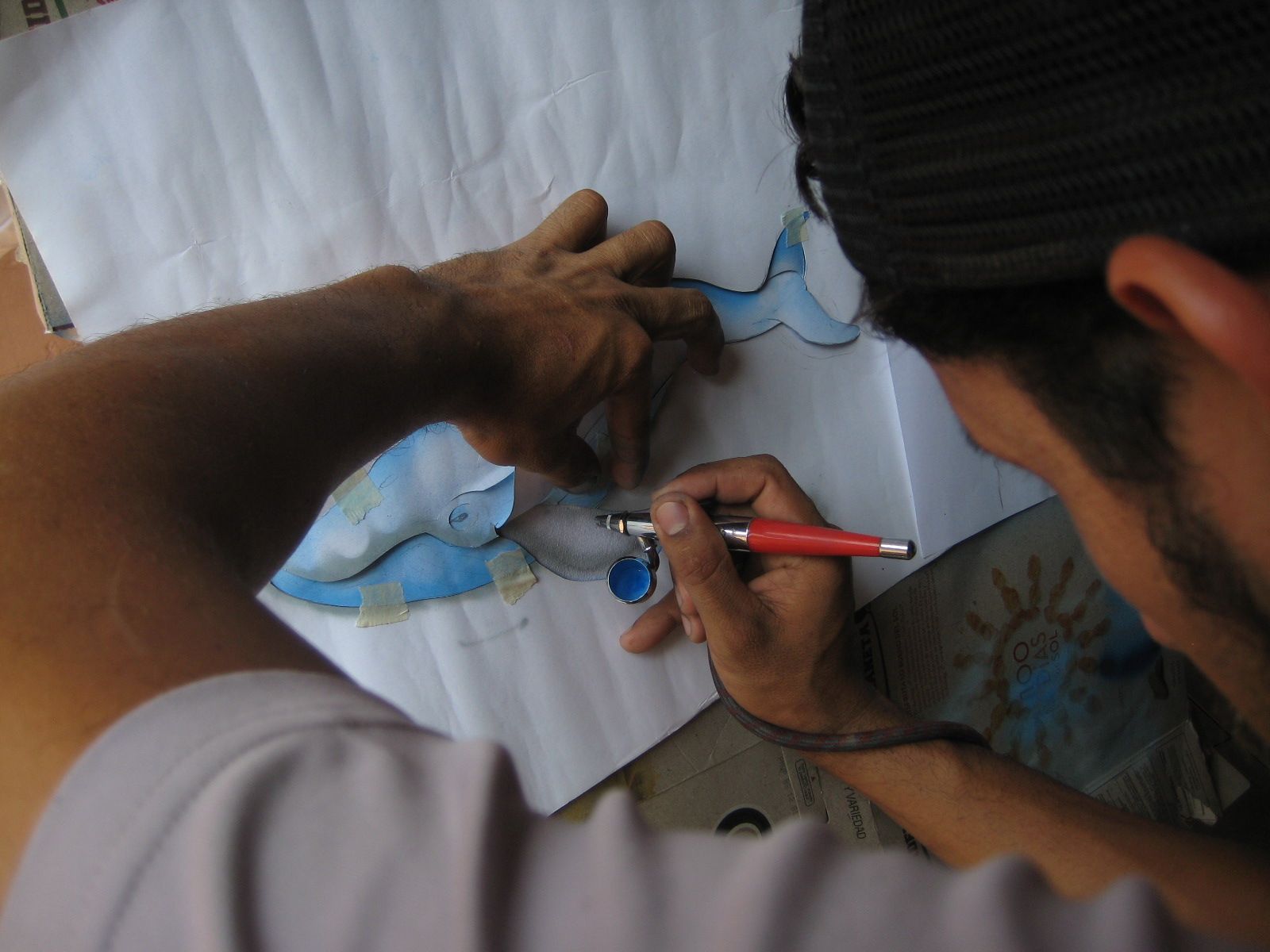 Luego de pintar la base, empasamos a sacar los detalles internos de la ballena Steemit.