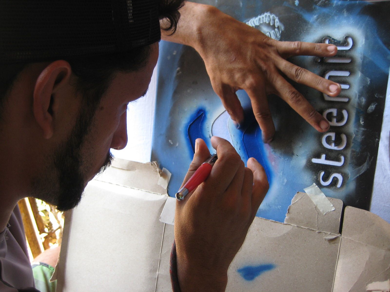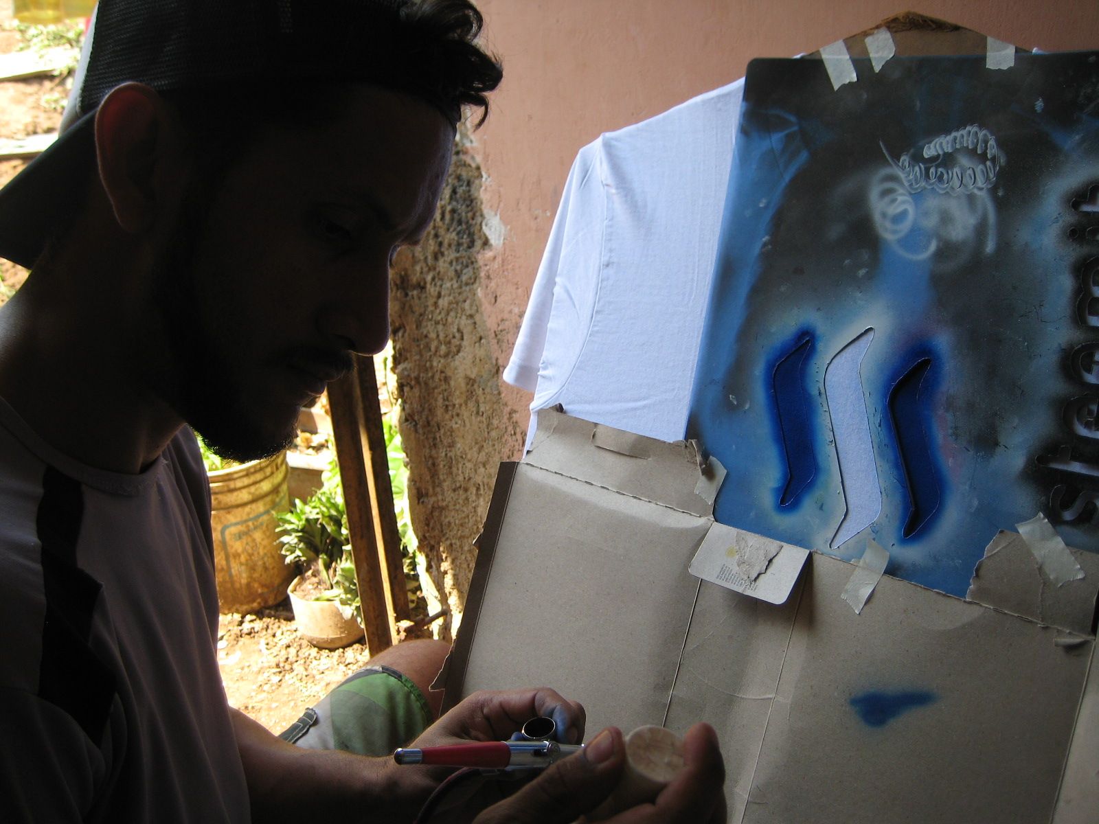 Una vez pintado el logo, se retiran las mascaras protectoras, para evitar ensuciar la prenda con la pintura sobrante.