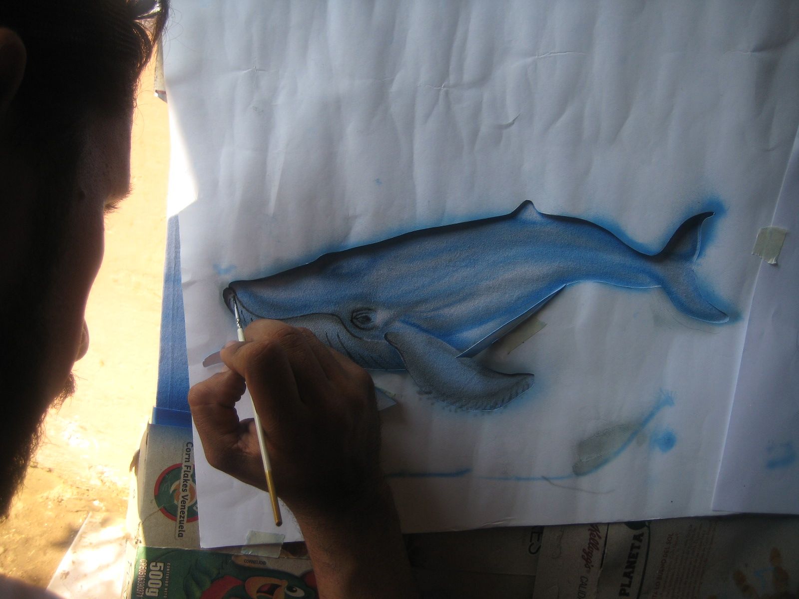 Realizada la ballena, aplicamos el pincel, para una máxima expresión u detalles.