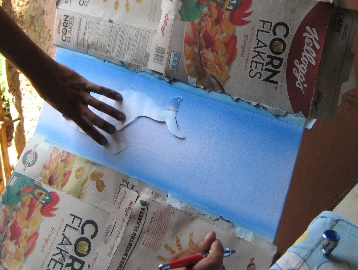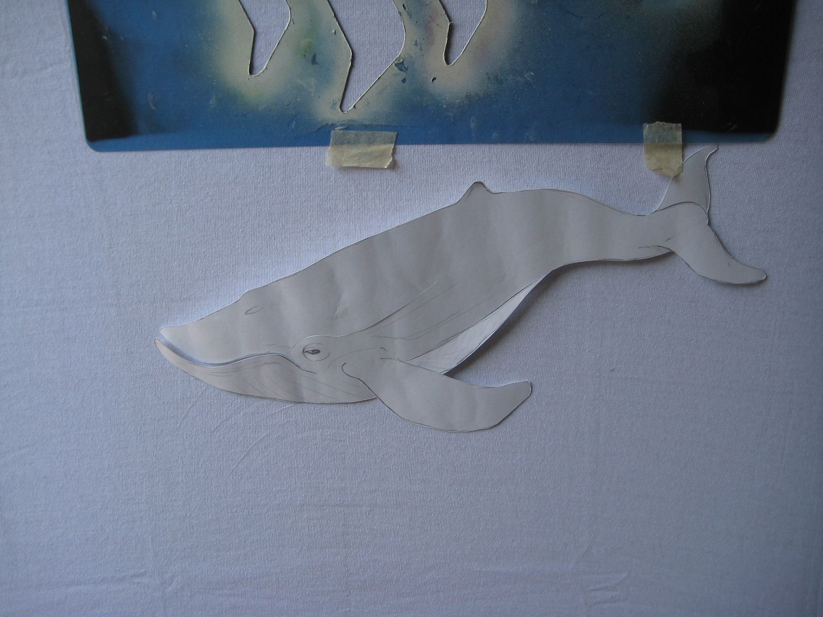Luego de terminar de pintar la ballena, coloqué la plantilla @marsella-2017 y utilizé color negro.