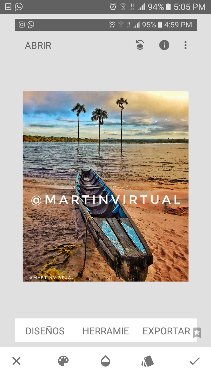 Finalmente hay que firmar la obra, por aquello de crear una marca personal. Aunque soy profesional de las imagenes (como médico), en fotografia soy aficionado, asi que para fines de publicación en redes (instagram y Steemit) soy @martinvirtual y como tal firmo mis proyectos.