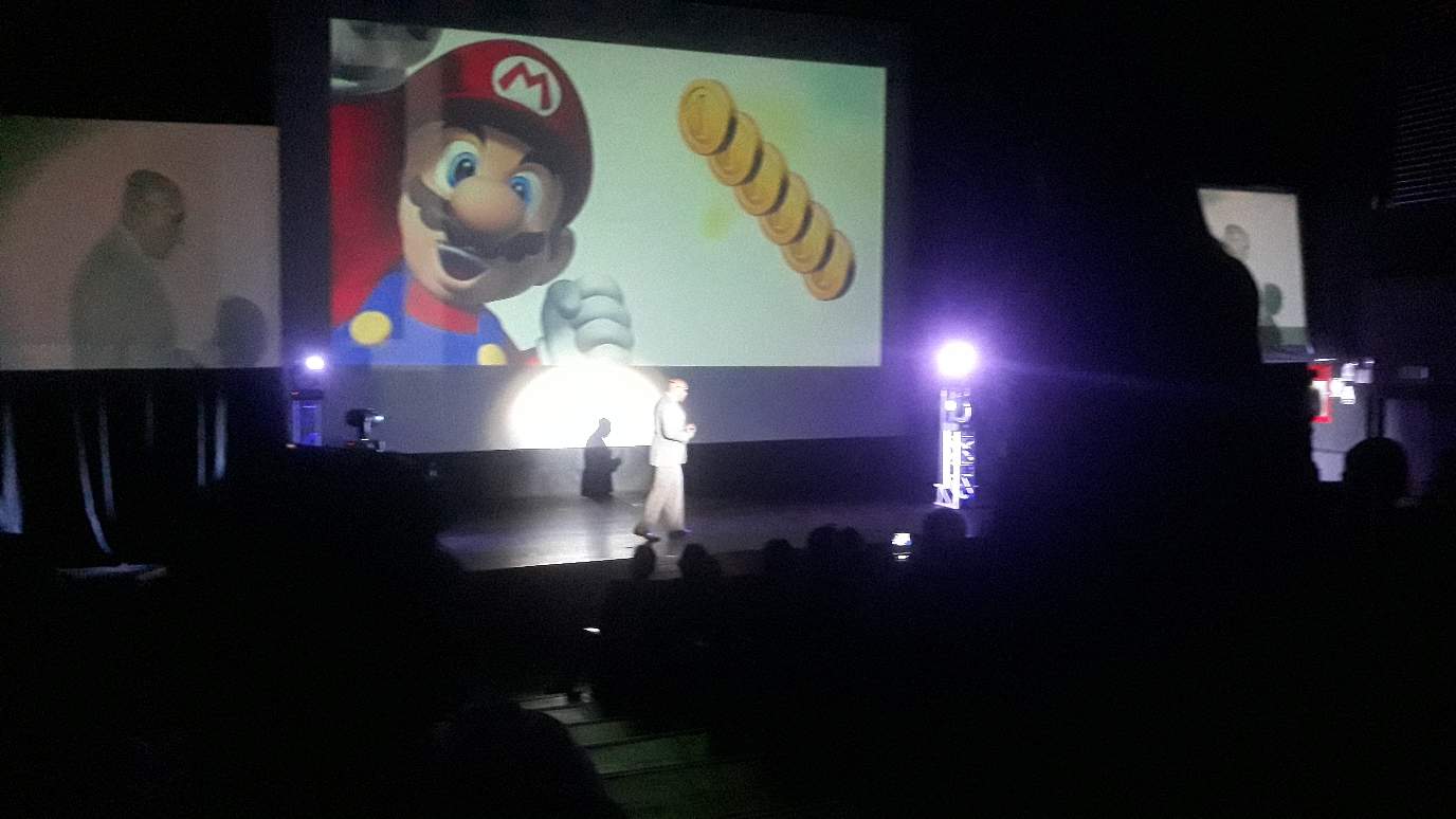 3.- Uno de los ponentes al momento de desplazarse por el escenario no se dio cuenta del espacio que tenía disponible y se cayó del escenario.