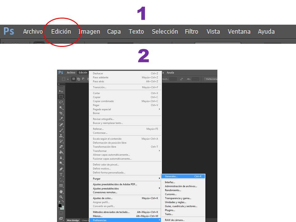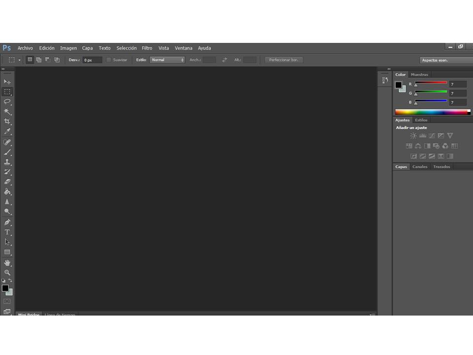 Realizado este paso, abres el photoshop y tendrás una interfaz similar a esta: