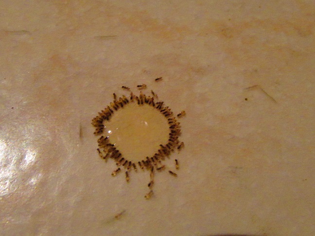 La verdad, la idea no fue mía, se le ocurrió a mi hermana cuando una noche me llamó para fotografiar un grupo de hormigas reunidas alrededor de un líquido; todas formaban un círculo perfecto y si se veían de lejos, hasta se asemejaban a un sol dibujado por manos infantiles. Aquí la fotografía original: