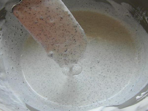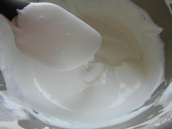 • En un envase se agrega la crema de leche bien fría, y se comienza a batir a una velocidad muy rápida para que espese y quede al estilo de una crema chantilly. También puede ser batido manualmente o con la ayuda de una batidora.