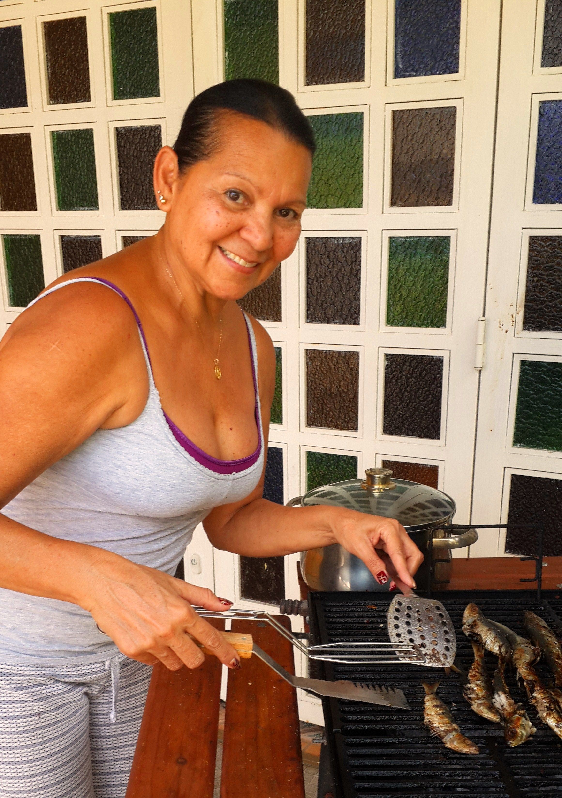 Asando unas sardinas a la parrilla que me encantan.