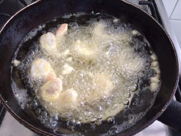• Después se bañan los camarones en la mezcla de rebozado y se fríen a fuego medio hasta que logren dorar, y luego se dejan escurrir en servilleta o papel absorbente para así eliminar el exceso de aceite.