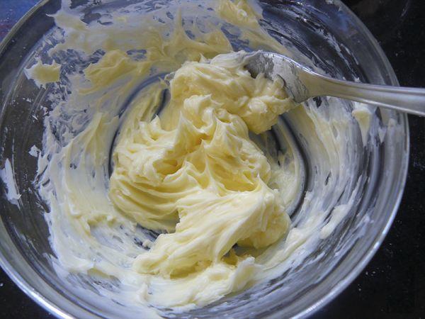 • Para la preparación de los ponquesitos, buscamos un envase grande y le añadimos la mantequilla y comenzamos aplastándola y después batimos hasta que alcance un punto cremoso.