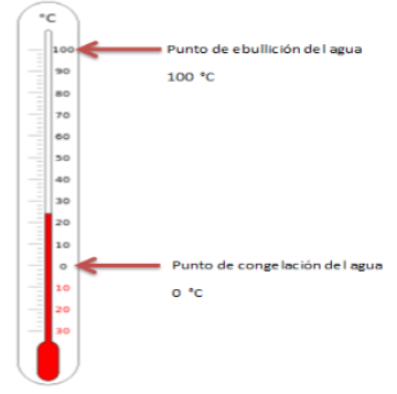Las escalas comúnmente usadas para medir la temperatura son: Celsius y Fahrenheit . En la escala Celsius se denomina punto de cero grados, al punto donde se congela el agua a la presión atmosférica estándar, y 100 grados Celsius al punto en que el agua hierve a la presión atmosférica estándar.