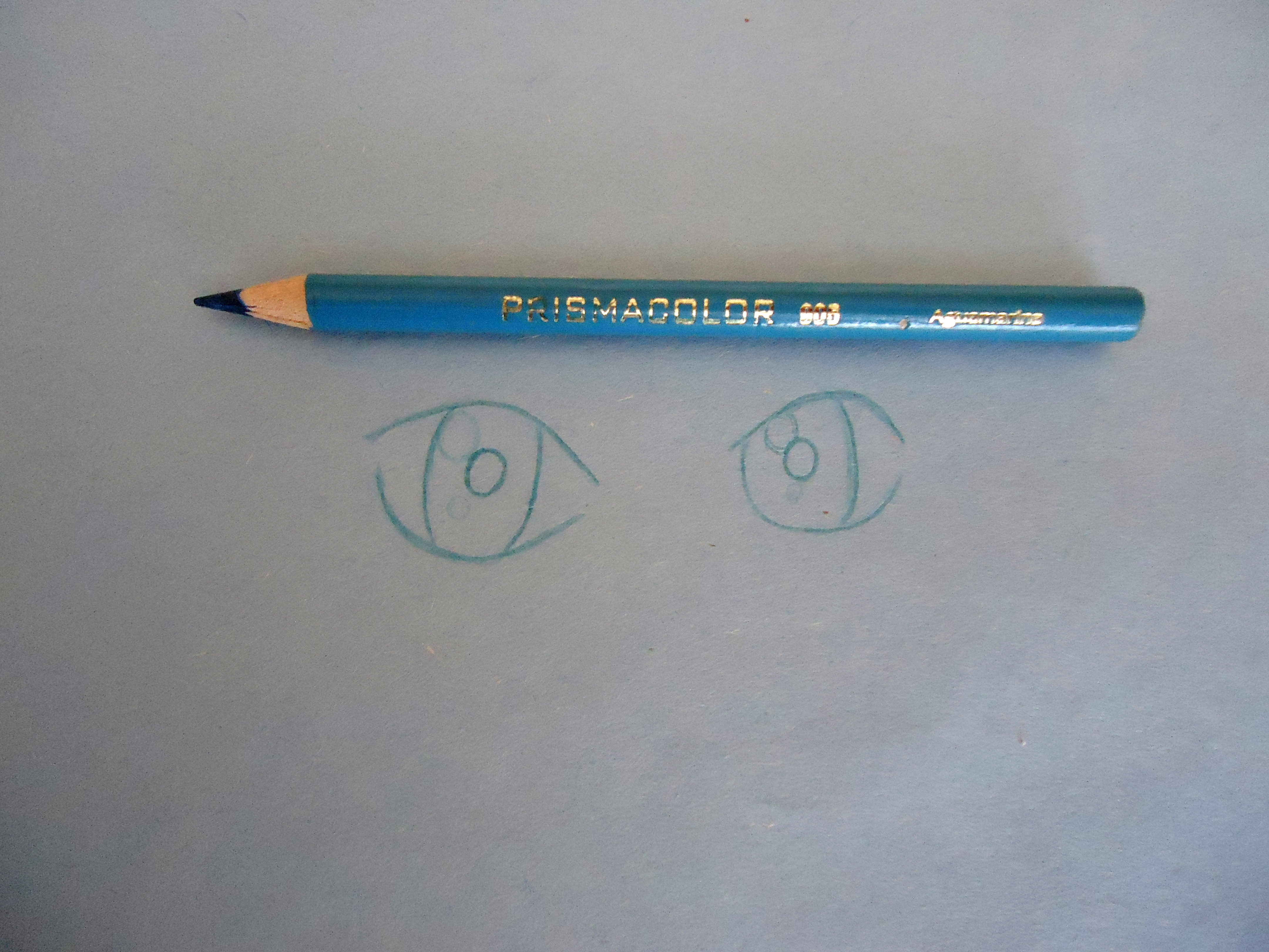 Comencé con el trazo de unas líneas curvas que sirvan de contorno de los ojos, posteriormente le agregué otras líneas curvas que asemejan el iris de los ojos, así como también dibujé las pupilas en el centro del iris y un par de óvalos para hacer el efecto del brillo del ojo.