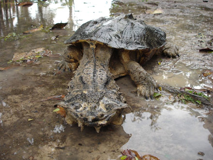 La primera es La tortuga Lagarto: Me impresione mucho, nunca había visto una tortuga así ni siquiera por televisión, creo que si llegara a ver una en vivo me desmayaría del miedo. Son muy feas y gigantes con un caparazón capas de superar los 49 cm de largo y son capases de partir en dos un palo de escoba con una sola mordida.