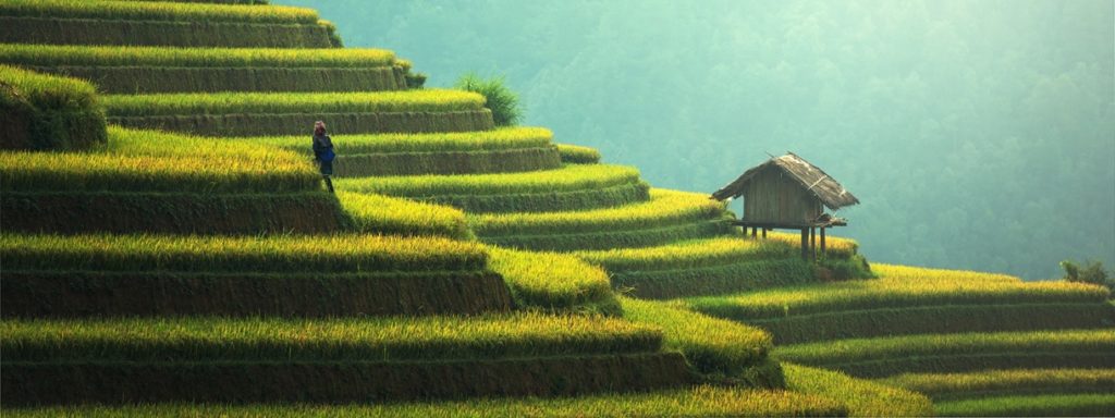 En la región de Longsheng, Guangxi en China han acondicionado montañas, generando estructuras llamadas "Terrazas" las cuales hacen le dan ese aspecto a la montaña, que pareciese tener escaleras, el desarrollo de esta técnica se origina por la necesidad de espacio para cultivar y debido a la pendiente de la montaña el sustrato (la tierra) tendía a lavarse, siendo este método mas efectivo incluso que el surcado.