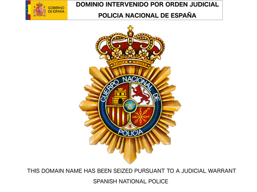 Pero bueno, el tema es que aún nos siguen tomando por tontos. Cualquier usuario español al entrar en esa web verá ese anuncio en el que pone que la policía ha intervenido el dominio.