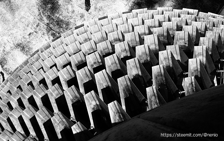 En el presente post muestro una serie de fotografías en formato blanco y negro, de esta interesante estructura. Al tomar las fotografías la fuente no estaba en funcionamiento ni tenía agua. Todas las imágenes fueron tomadas con un iPhone 4, lo que limita mucho las posibilidades al realizar las fotos; posteriormente fueron transformadas en blanco y negro usando gimp.