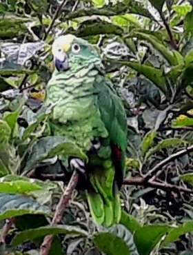 Más adelante hay una bella vereda bajo la sombra de grandes árboles. Allí podemos encontrar algunos representantes de la familia de los loros que están amenazados de extinción como el Loro Real (Amazona ochrocephala) cuyo plumaje es de un verde muy intenso y la Guacamaya (Ara macao) de color rojo y azul y con algunas pintas verdes.