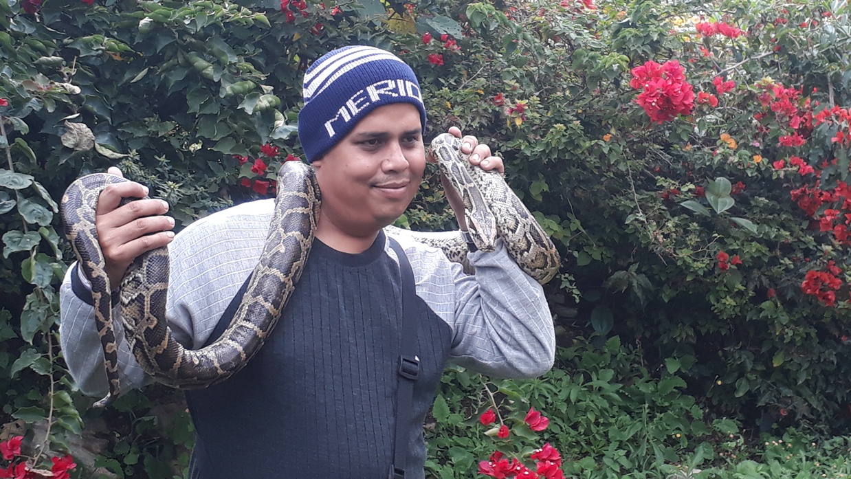 También hay un ejemplar de pitón tigrina (Python molurus). Cualquier visitante la puede agarrar y ponérsela encima para que le tomen una foto. Esto sí, sin olvidar aportar una contribución para la alimentación, compuesta por ratas y ratones, que tiene este dócil reptil.