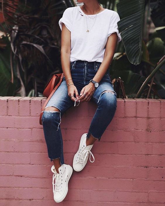 Camiseta blanca y jeans, definitivamente un clasico.