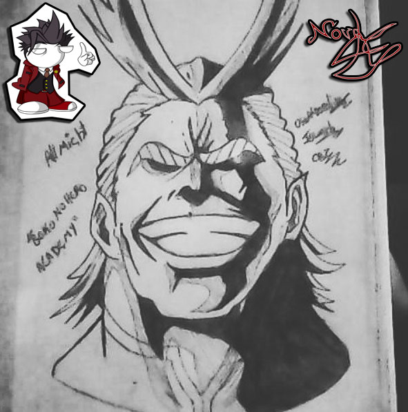 All might (lapiz) dibujo antiguo, “no importa que tan mal se vea todo, sonríe ante los problemas”