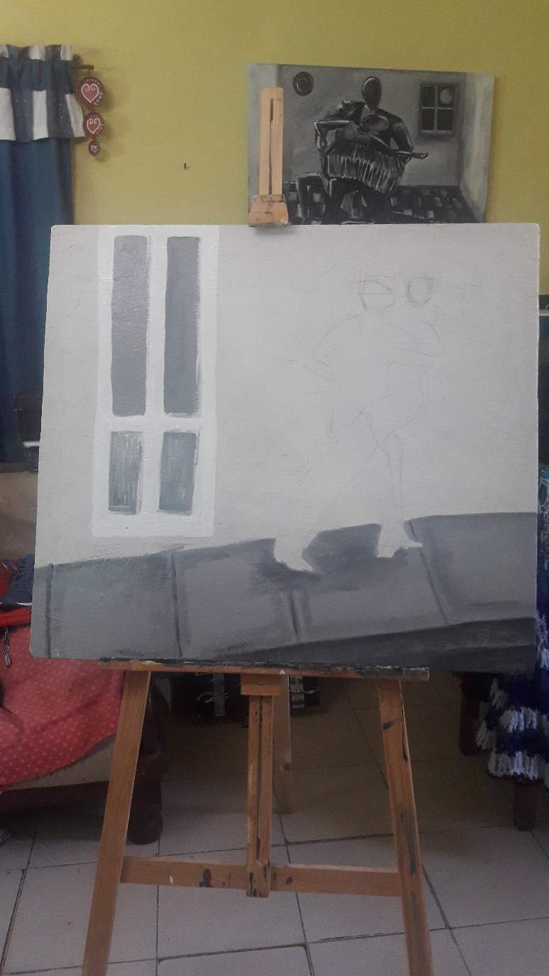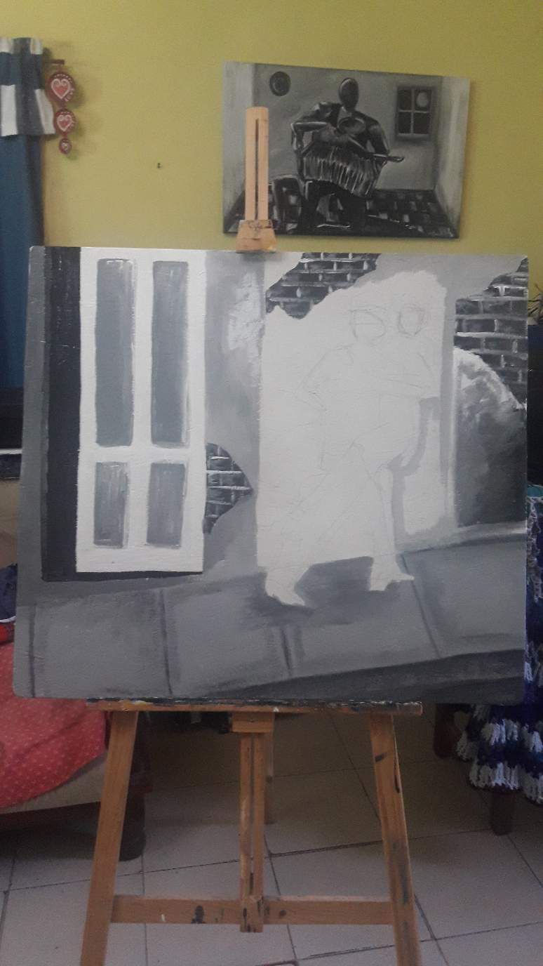 hola amigos de steemit!!! hoy le voy a mostrar una secuencia de fotos de un cuadro que realice con madera reciclada, utilizé acrílicos y lo ponte en escala de grises.
