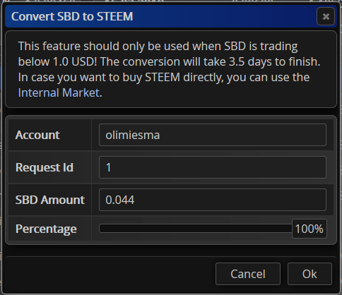 Por mi parte, no he hablado del SBD de esta cuenta, solo para decir que se guardaría. Mejor que estancar, voy a hacer uso de él y lo voy a transformar en Steem; No obstante, al tratarse de mis ahorros personales en la plataforma, puedo hacer con él lo que quiera.