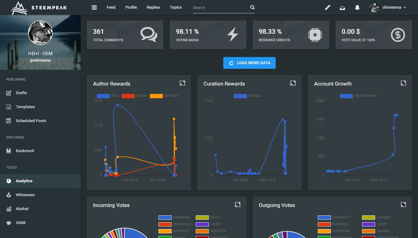 El análisis, donde antes sugería una fusión de datos, esta es una parte crucial de la analítica de nuestro avance por la red Steem, aquí en la parte izquierda (menú izquierdo) se podría añadir herramientas de análisis profundo y mucho más avanzado, donde podamos buscar información relevante y cualquier índole en la propia plataforma Web, esto sería una cosa muy muy buena ;-)