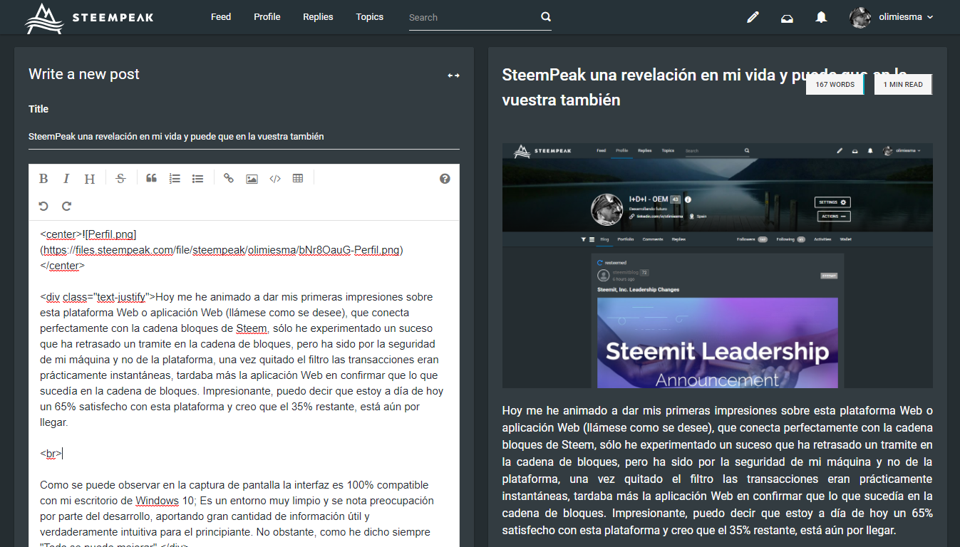Como me diría una vieja amiga de los canales de IRC cuando todavía usábamos conexiones de 56 K y con un módem que parecía la caja de música de mi abuela, bueno ella diría que se me está haciendo el culo agua con SteemPeak; Únicamente admito que me ha sorprendido y que le da como 80 vueltas y media a Steemit, si alguien se ofende, por favor mi intención no es menospreciar el trabajo de los demás, pero si veo que hay algo mejor, como digo yo, pierdo el culo de un lado para irme a otro, o lo que es lo mismo, nunca es tarde si la dicha es buena.