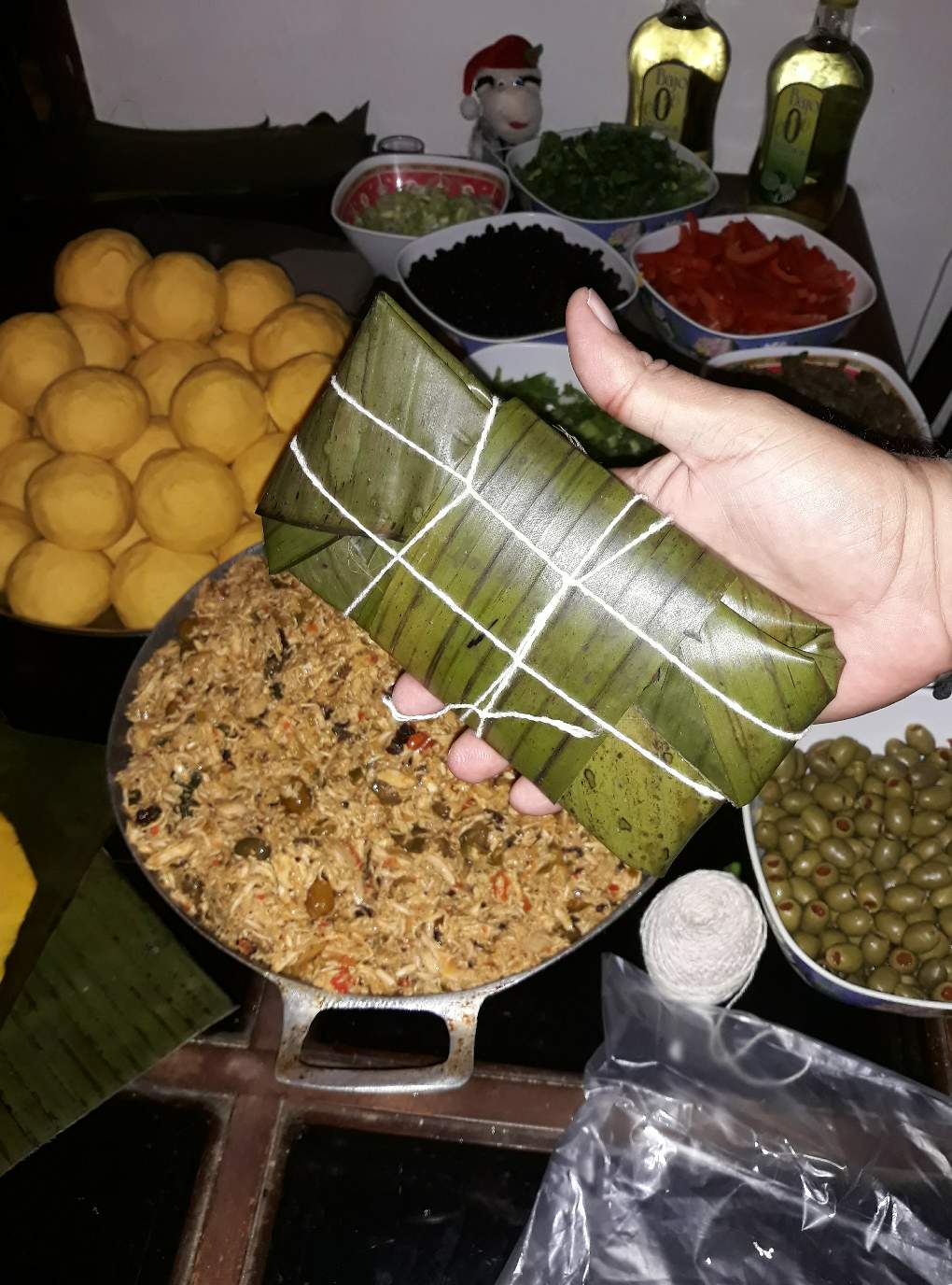 Que empiecen a sonar las Gaitas que este fin de año será tan igual o mejor que los anteriores. El ánimo y la motivación está en cada uno de nosotros , así que de repente se empezó a hablar de traer ingredientes a casa, y en un par de horas más tardes me encontraba amarrando un delicioso y exquisito plato Venezolano , una HALLACA , bajo un ambiente increíble e inspirador ..
