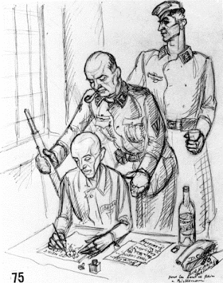 Ilustración de David Olére, representándose al mismo redactando para los Nazis