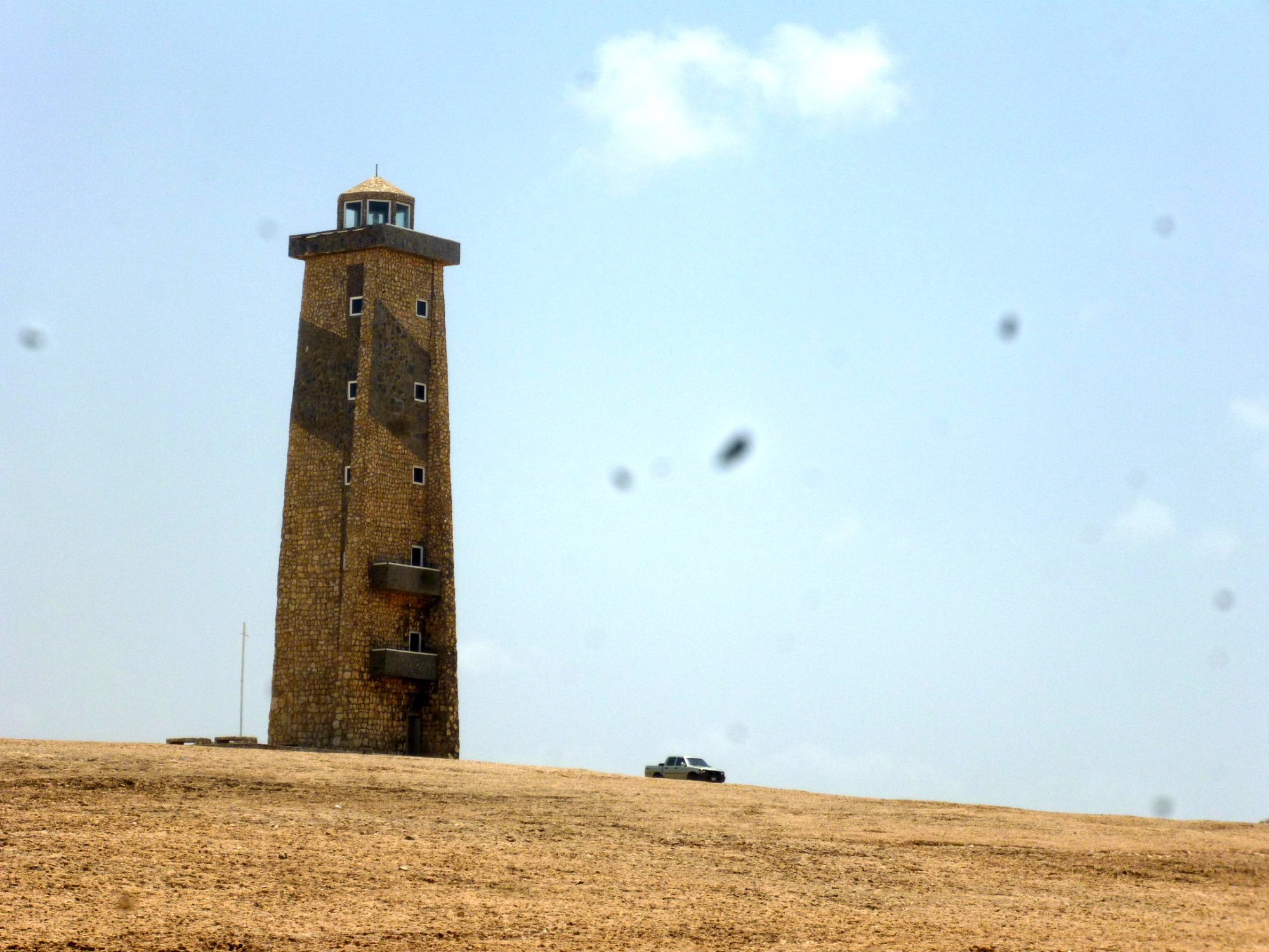 Seguí rodando más y encontré el Cabo San Román, el cual fue nombrado el 9 de agosto de 1499 de esa manera por ser día de San Román, inspirado en el faro de piedra más antiguo del mundo. Se encuentra a 112 kilómetros de Coro y a parte de su imponente faro se hace atractivo el oleaje fuerte de sus aguas y los médanos blancos.