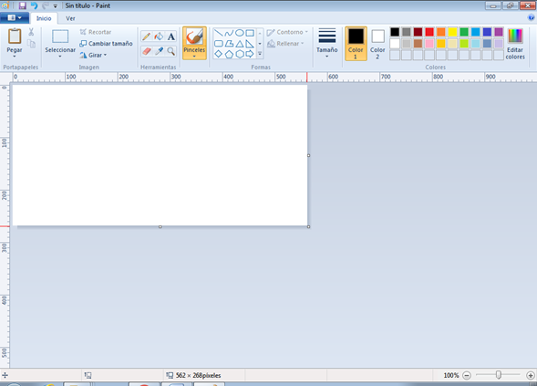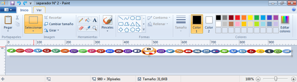 Lo primero que tienes que hacer en Paint, es darle el tamaño necesario a tu separador, fíjate en la regla que muestra este programa, está ubicada la parte inferior de la barra de herramientas y encima del área de trabajo, su medida esta expresada en pixeles.
