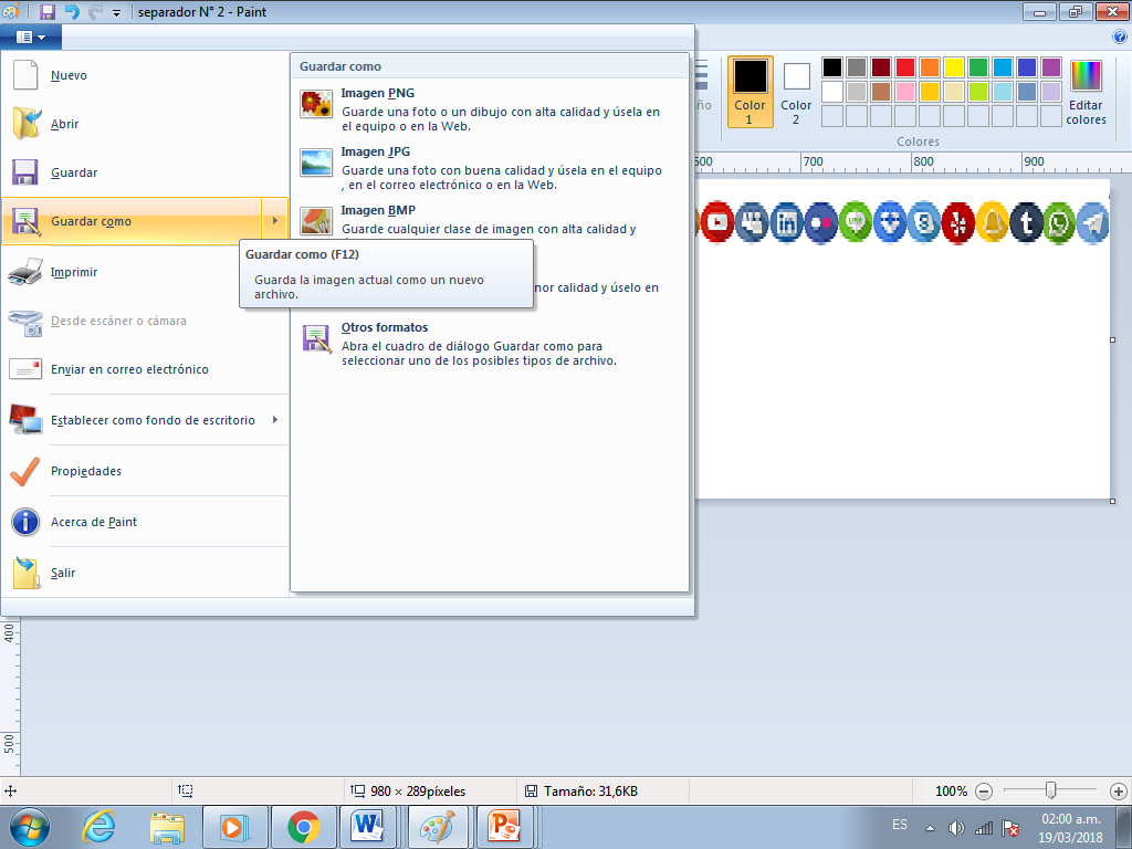 En Paint, puedes cambiar o ajustar el tamaño para que el objeto no se distorsione, puede cambiar el color del fondo, colocar o borrar detalles que hagan falta... luego procede a guardarlo, colocale el nombre de tu preferencia y muy importante el formato con el que guardaras tu separador, preferiblemente JPEG, el cual es el mejor formato para trabajar en internet.