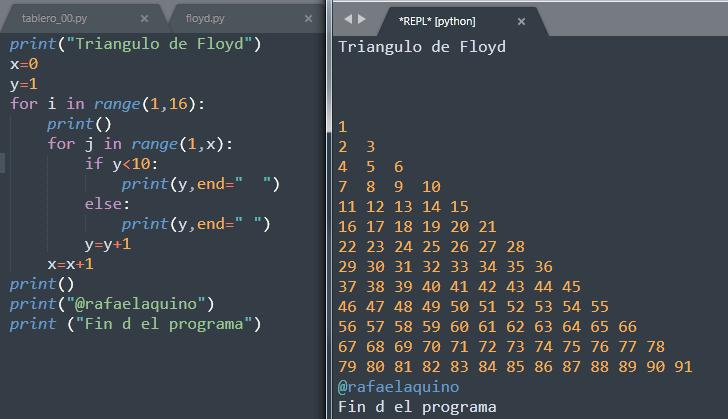 A continuación el triangulo de floyd. Aquí también me llevo un tiempo dar con la solución.