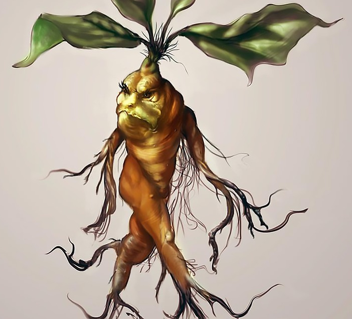 Planta mítica muy ligada a leyendas y extrañas creencias, como que "grita" al extaerse la raiz y muere quien la extrae y la oye (por eso se usaban animales para ello), o que la más "activa o potente" crece debajo de un ahorcado.