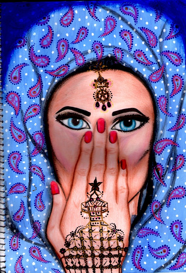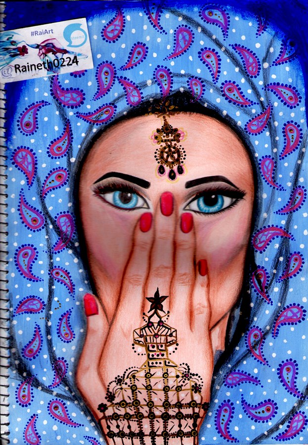 hola steemers hoy quiero mostrarles un dibujo que he realizado con mucho entusiasmo ya que tenia unas semanas sin dibujar y hoy lo he vuelto a retomar, se trata de una princesa indu en tonos azules, he elegido hacerla porque me encanta la vestimenta, las telas y las joyas que utilizan las chicas indues, usan colores muy brillantes y llamativos que al verlos me inspira a plasmar en mi block de dibujo estos increíbles diseños y colores, sin mas que decir espero les guste mi trabajo.