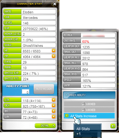 Algo que agrada de este juego y que es algo que llevo comentando siempre, es el poder distribuir puntos de Stats después de subir de nivel. Por cada uno que subas, te otorgarán 5 puntos los cuales podrás usar a tu gusto, pero debes tener cuidado, hay ciertas cosas que te pedirán un mínimo de "Stats Points"