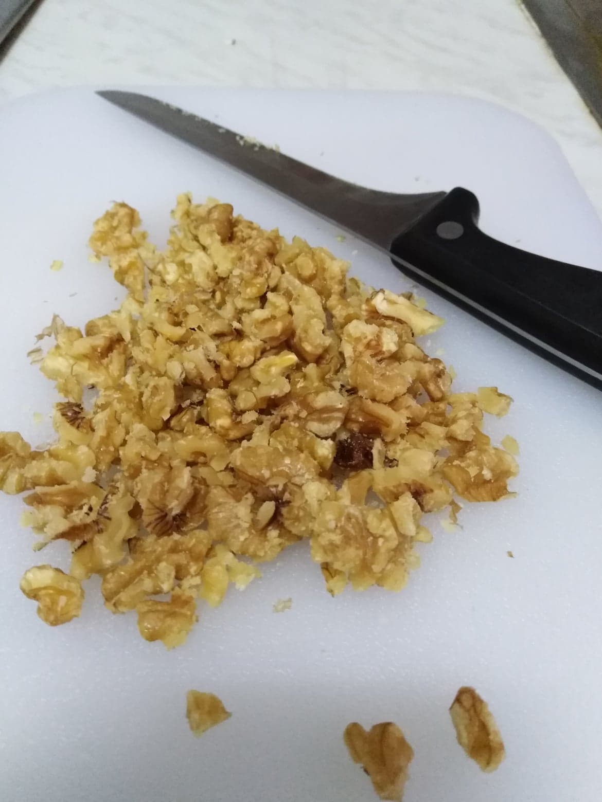 Primero prepararemos el relleno para que se repose. Cortamos las nueces.