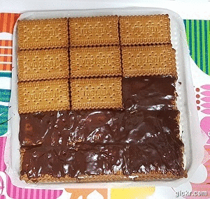Volvemos a mojar las galletas en almíbar una a una y las ponemos sobre la capa de chocolate hasta tenerla cubierta.