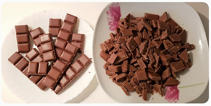 Para empezar, colocamos las galletas en un plato para manipularlas mejor y troceamos las 2 tabletas de chocolate que vamos a fundir.