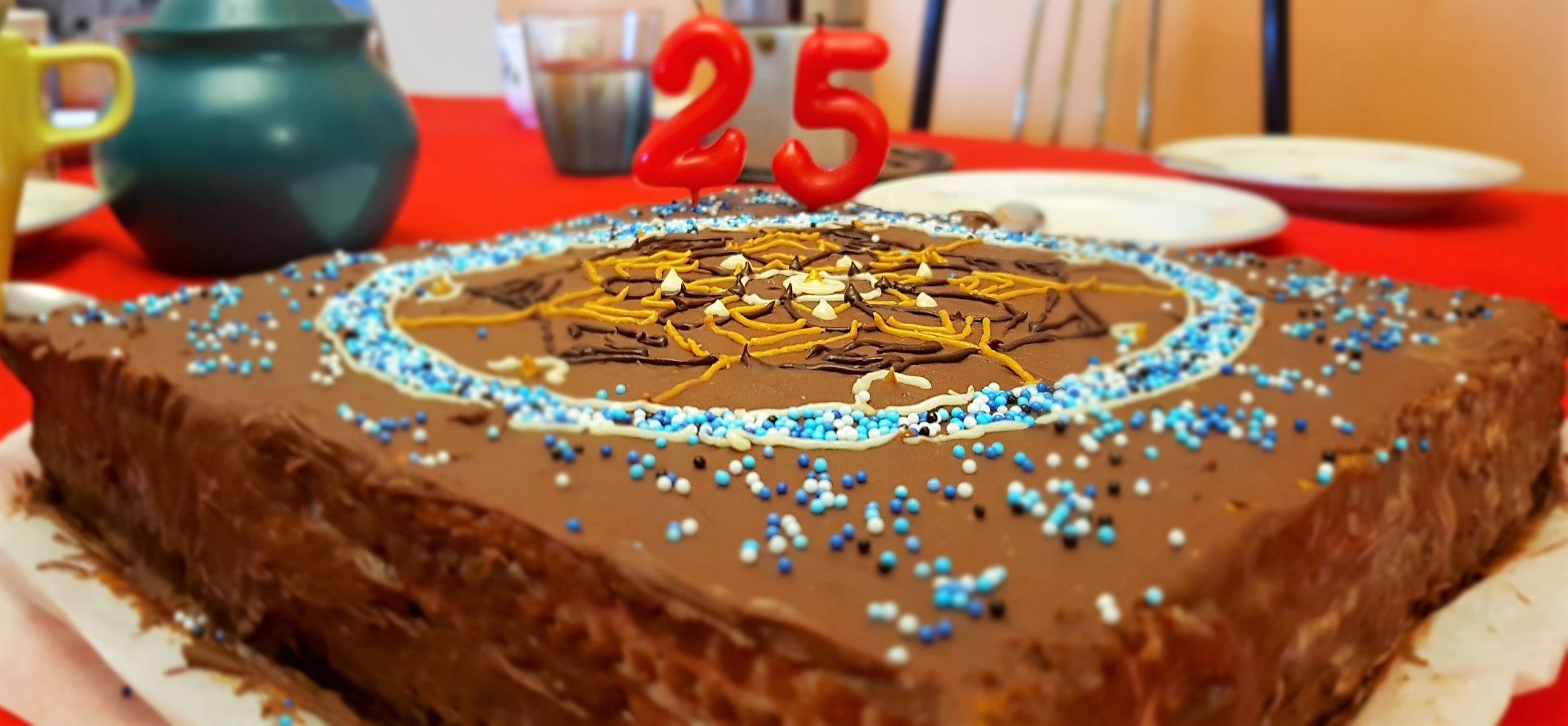 La tarta la hice para el cumpleaños de mi hermana y quise darle la sorpresa con la decoración de un mándala o “intento de mándala”.