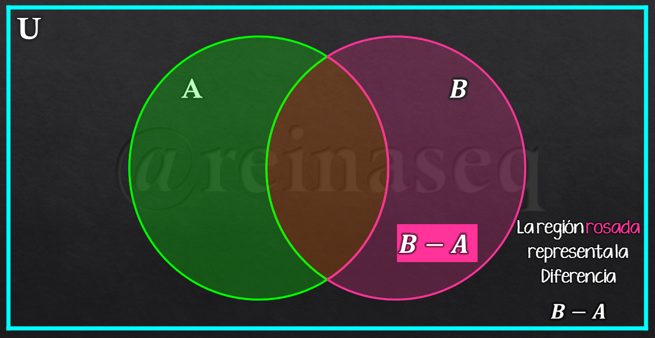 En este caso, comencemos analizando desde lo habitual a que se refiere el concepto de diferencia y es que seguramente lo primero que se nos viene a la mente tiene que ver con cualidades, aspectos o características en las cuales no se tiene coincidencia, acuerdo o similitud alguna. Esto nos indica que algo o alguien es diferente a otro porque no hay coincidencia en algunos o todos los detalles que lo integran. En el caso de los conjuntos (que ya sabemos por publicaciones anteriores que identifican porciones de la realidad y cotidianidad del ser humano) se presenta por analogía la misma situación, en tanto que se puede determinar tomando en cuenta los elementos que están en uno pero no en el otro.