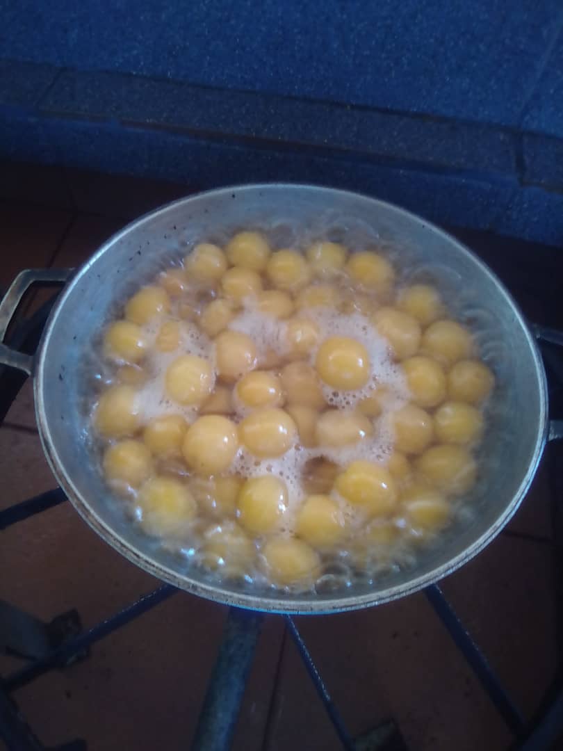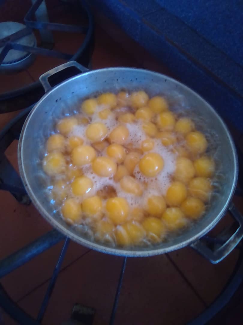 Se deja cocinar durante un tiempo de 25 minutos, allí mis apreciados lectores mientras el agua y azúcar se van transformando en un rico almíbar, se desprenden unos olores inmensamente agradables, lo apagamos y dejamos reposar un poco para llevar a la nevera.