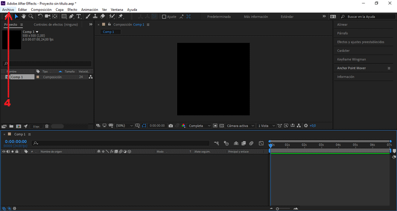 Abrimos la composición «Principal», presionando doble clic sobre ella.
