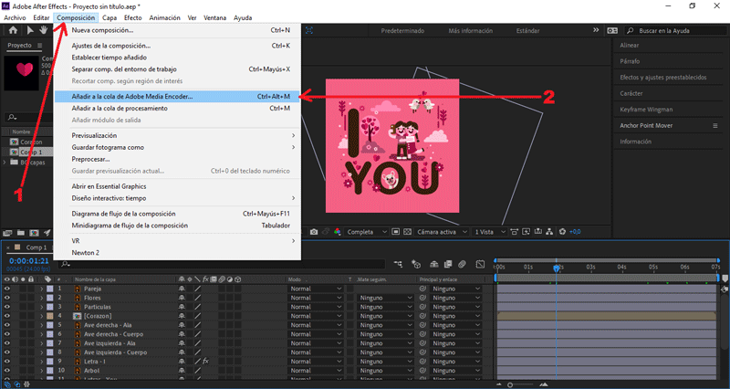 Presionamos Composición/Añadir a cola de Adobe Media Encoder...