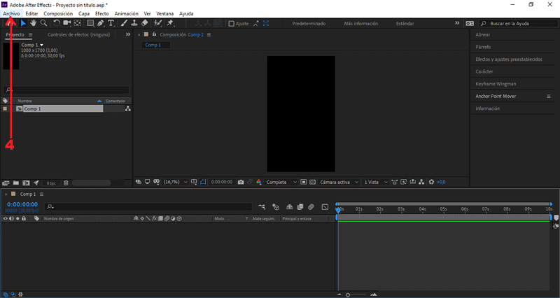 Empezaremos creando una nueva composición.